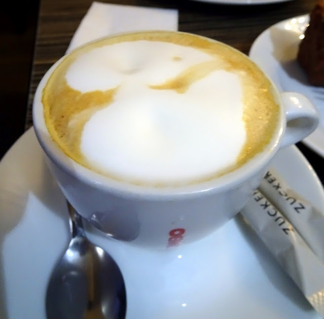 Today is also time to celebrate Elizabeth's T sTands for Tuesday, which begins Monday evening. As all cafes and restaurants are closed now, I have pictures from 2 particularly decadent cafes visited last year, where there was coffee and cappuccino and cake in plenty;