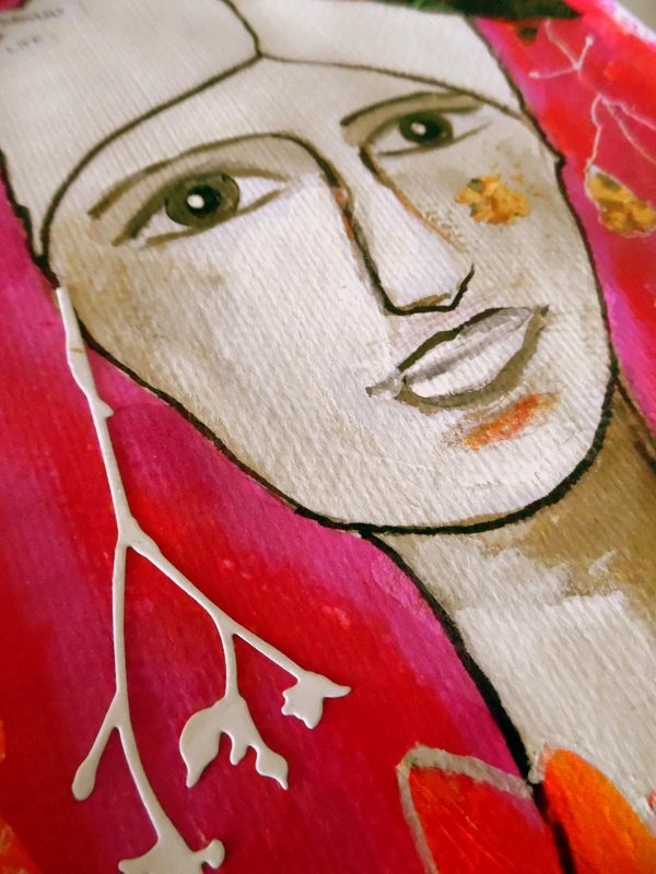 DeleteThis is a stunning lady, Valerie. Rather pensive, perhaps, but lovely anyway. the gold gilding flakes around her face really brought this piece out. Thanks for another great entry for Tracey's theme at AJJ, too.