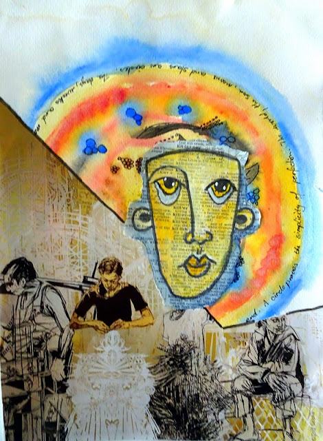 DeleteEnjoyed your final, final entry for Alison's theme at AJJ. Sunflowers always make me smile, since they are my state flower. The journal page is wonderful. You draw faces so well. The eyes speak to me. Nicely done.