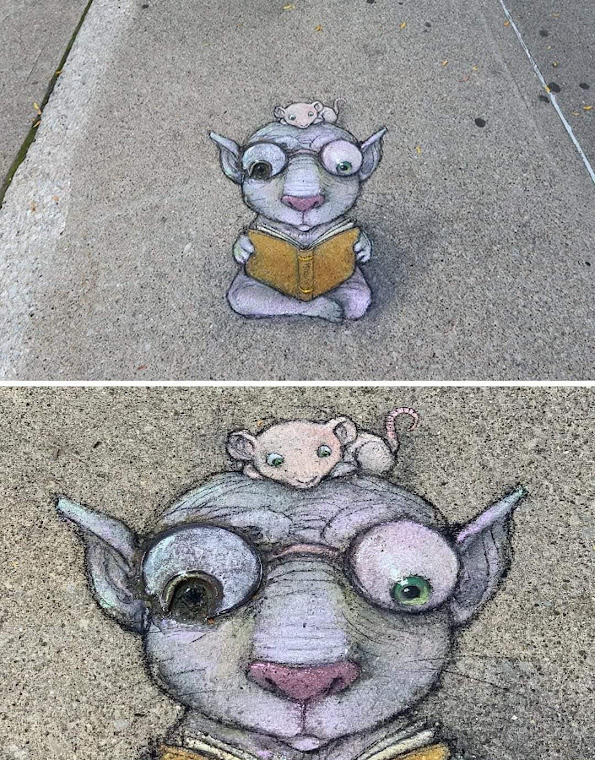 DeleteWow Valerie, your blue faces are amazing! I always love to see the pavement art, he is SO clever! Chickens are amazing aren't they, fancy them being related to the T-Rex! Take care and have a great week, Sue xx